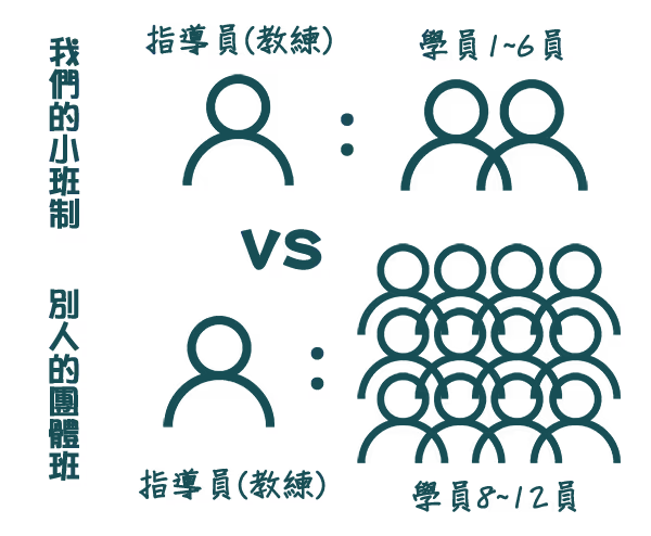 ⛔ 團體課程需要配合所有人的進度,輪到自己短暫練習後,接著又得在冰冷的天氣中等待,學習效果往往不如預期。💪 相比專屬教練小班制,由熟悉的親朋好友組成,一人也能開班,客製化的課程,將根據您的需求量身設計學習進度,不僅能獲得更多的教練指導時間,還能大幅提升學習效率。